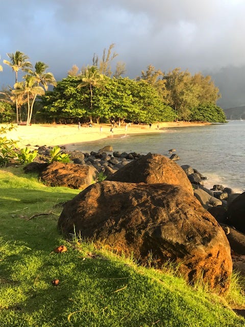 My body remembers a distinct feeling from another time, in another land, a feeling of joyful play, peace with the animals, plants, and the waters. In a tropical world at the edge of the ocean, I and others like me lived side by side with the wild animals with no sense of fear. This cellular memory underlies my life, my love of pure bodily play and being at home in nature. The closest I have experienced to this memory is the north shore of Kauai. I have wondered if it was Lemuria I remember.